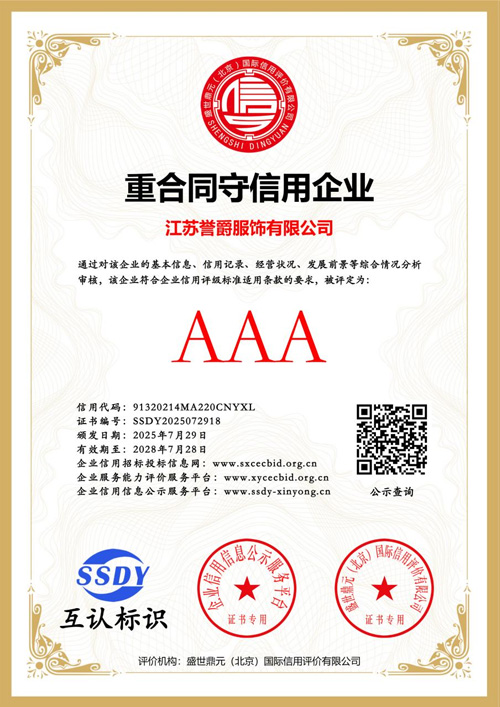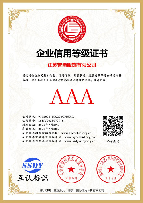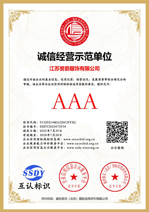 凭借完善的供应链体系与丰富的产品矩阵,江苏誉爵服饰于 2025 年 9 月成功入选无锡市商务局公布的跨境电商重点培育企业名单。
